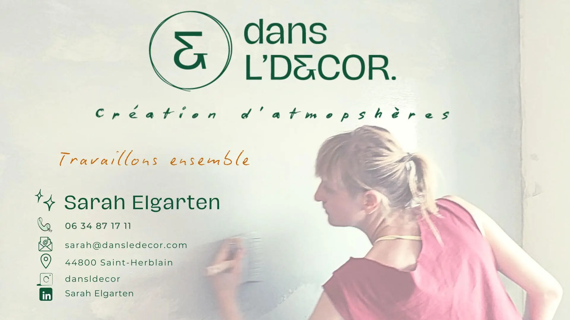 DANS L’DECOR est un atelier de peinture décorative artisanale basé à Nantes, spécialisé dans la création de fresques murales personnalisées, lettrages peints à la main et imitations de matières. Chaque projet allie savoir-faire traditionnel et création contemporaine pour donner vie à des espaces uniques et inspirants.