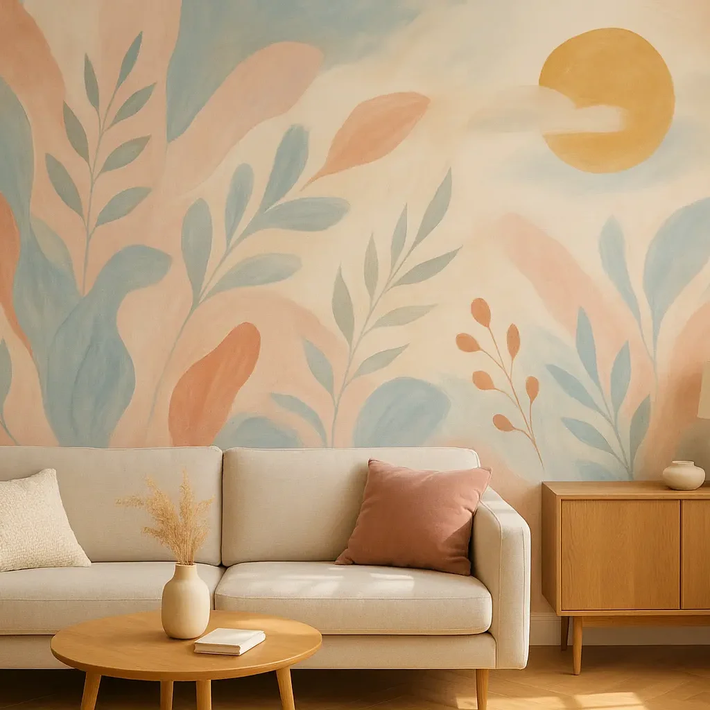 Chaque composition, qu’elle soit poétique, végétale ou géométrique, est peinte à la main pour créer une ambiance unique et harmonieuse dans vos espaces.