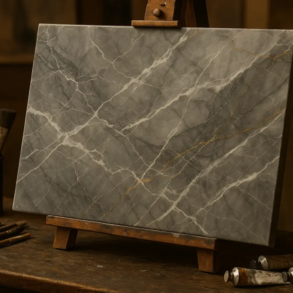 Chaque effet matière est peint selon des techniques traditionnelles, offrant un rendu d’une finesse exceptionnelle.